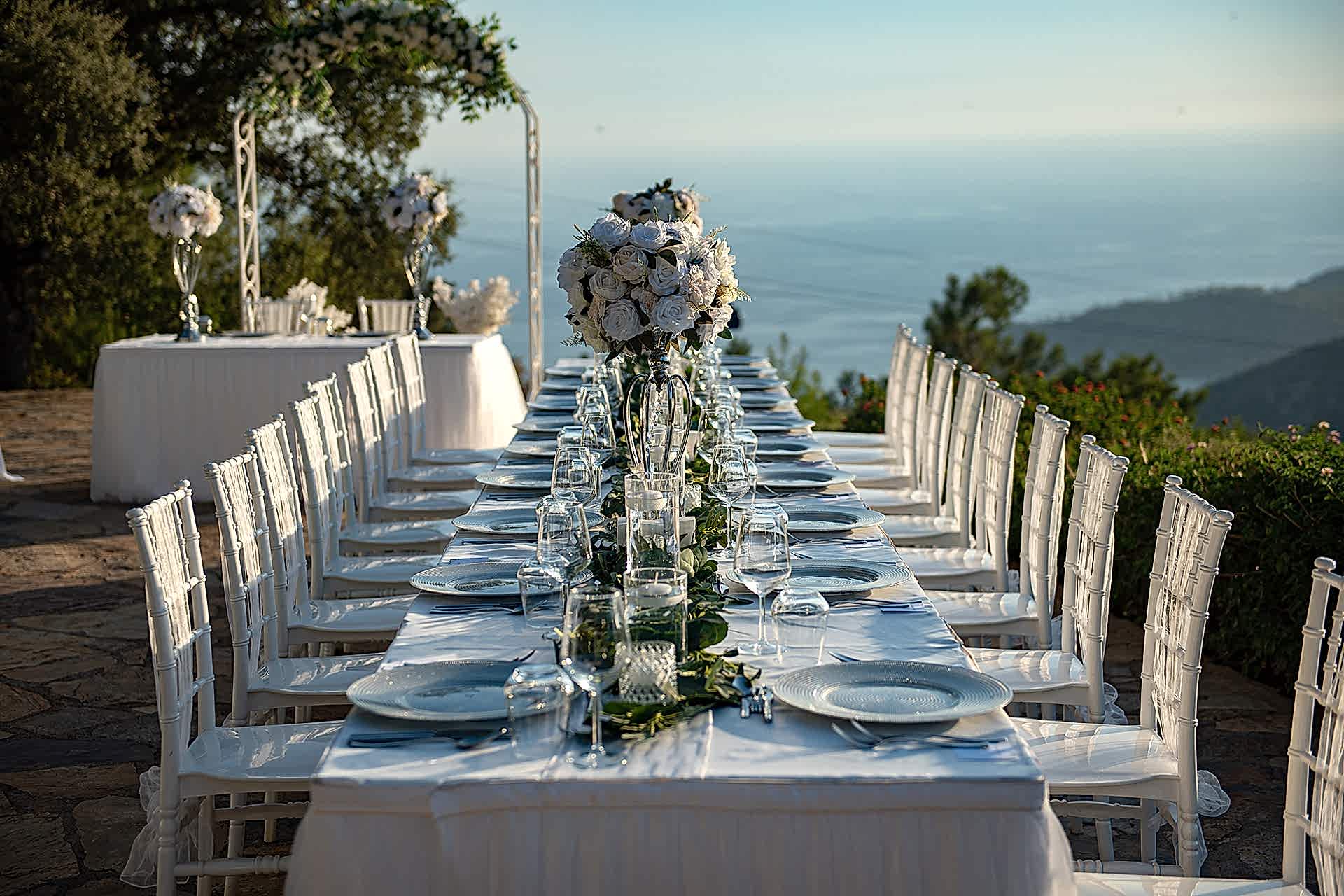 Exchange vows on the sunset terrace, overlooking crystal-clear waters and stunning panoramic vistas. The serene atmosphere and picturesque setting create an unforgettable backdrop for your special day.